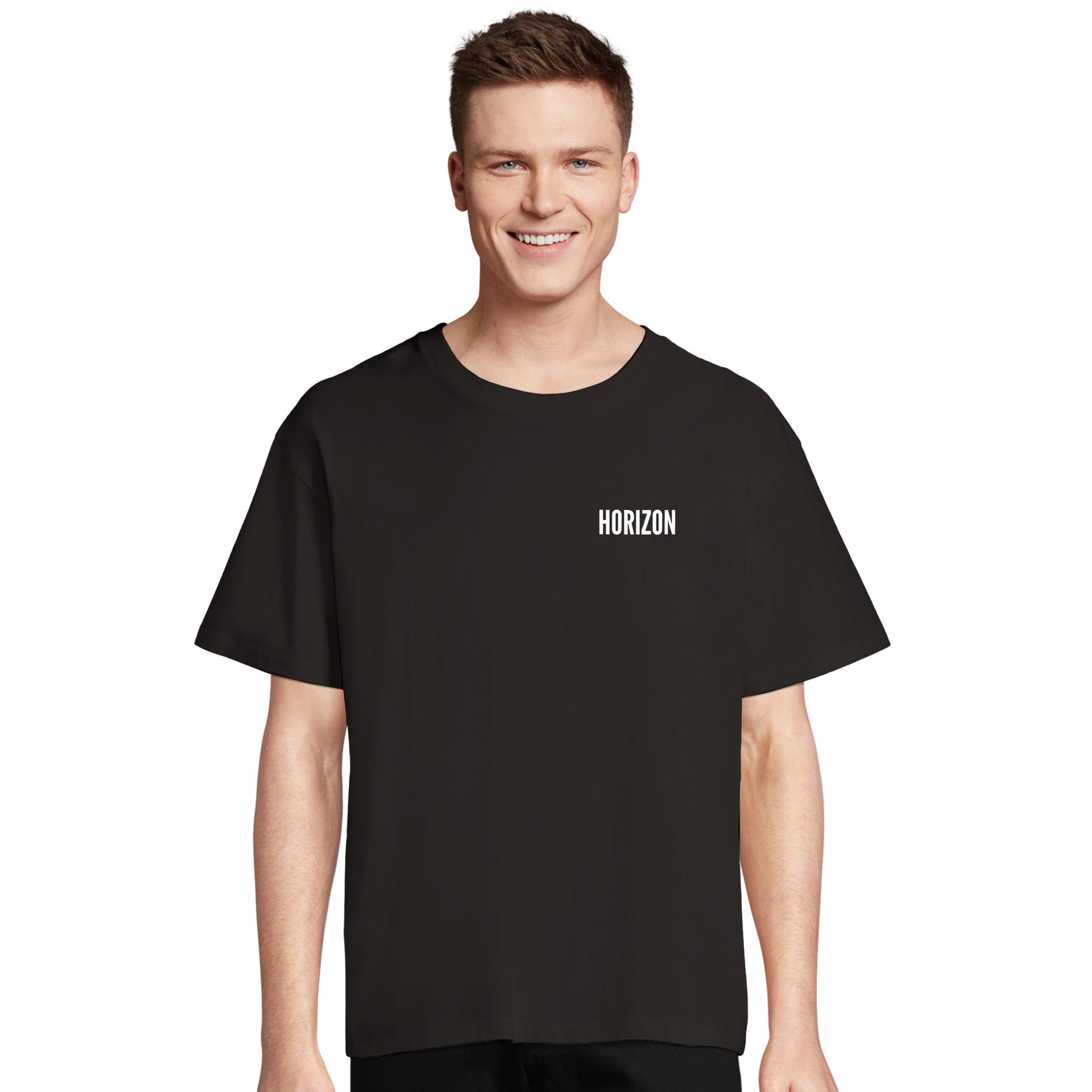 Pièce essentielle de la collection Horizon Paris, ce t-shirt oversize impose son style par la simplicité et la justesse de ses lignes. Sa coupe large et confortable apporte une allure décontractée tout en conservant une élégance moderne. Sur la poitrine, le logo "HORIZON" vient s’afficher en contraste, affirmant une identité épurée et contemporaine qui traverse les tendances sans jamais les subir.